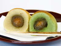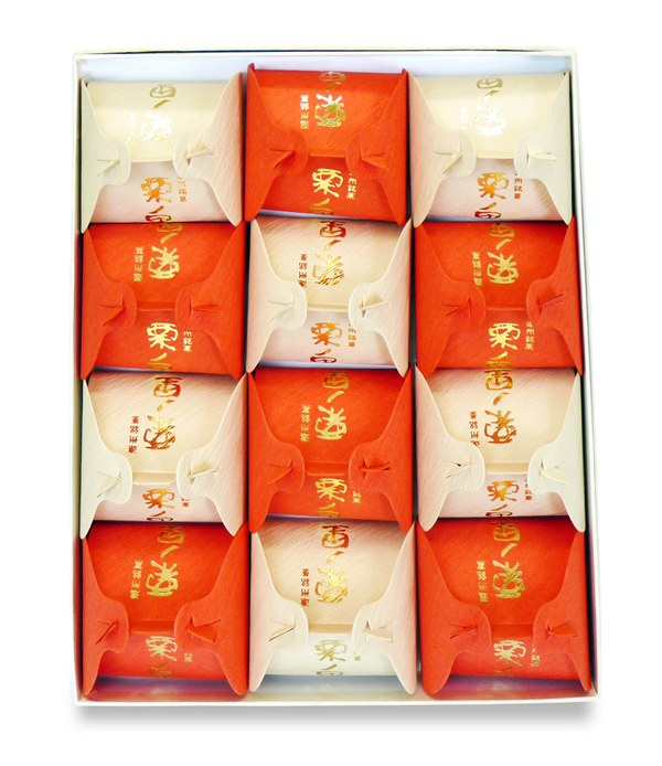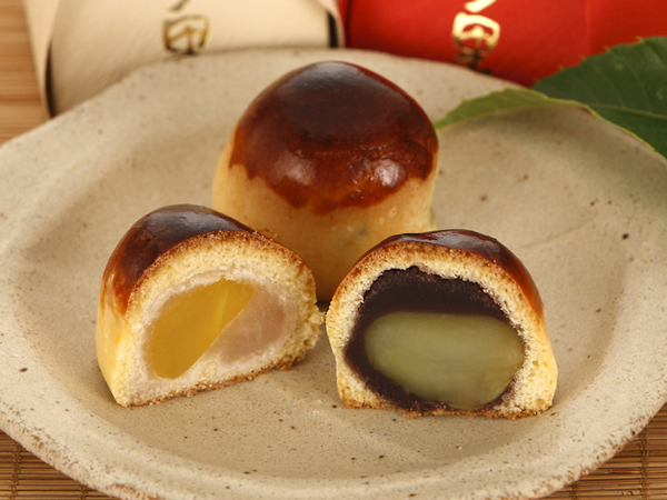 厳選された栗を、ひとつひとつあんで丁寧に包み焼き上げたおまんじゅうです。こしあんと白あんの2種類の味をお楽しみいただけます。